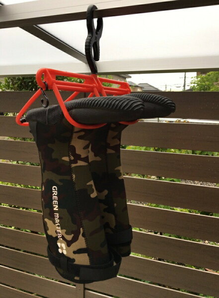 乾きにくいどころか、どう干すのが正解なのかも悩ましい靴やウエーダーも洗濯しやすくなること間違いなしです! 靴を宙に浮いた状態に吊りながら裏返すという理想的な干し方ができるのは専用品ならではです。
