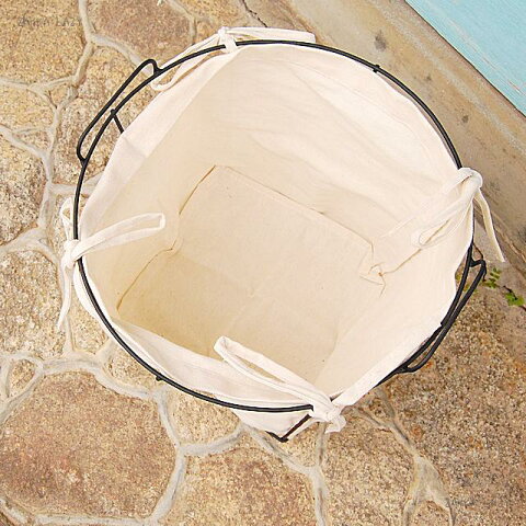 ---------------------------------- 華奢なアイアンにキャンバス生地を取り付けたバスケット。