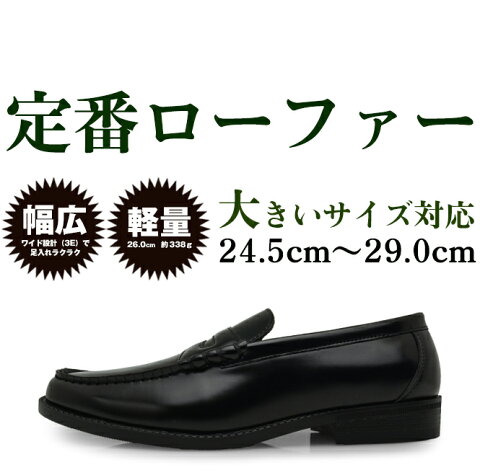 学生靴の定番デザイン"メンズ ローファー" 幅広設計(3E EEE)で足入れラクラク。